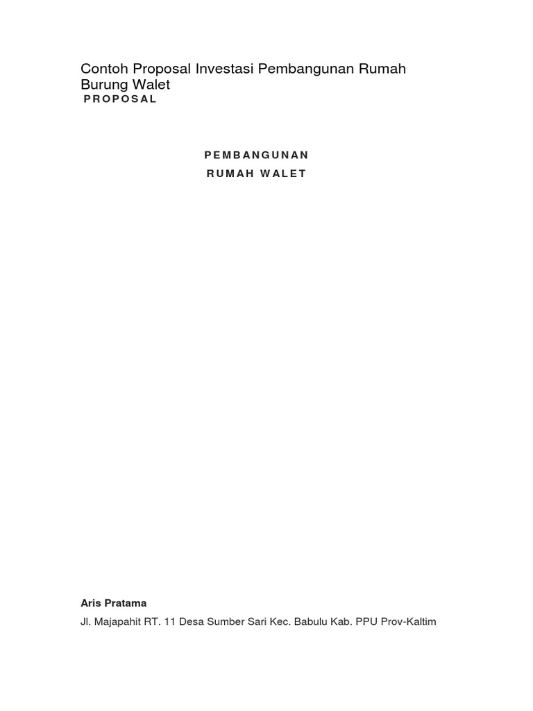 Contoh Proposal Investasi Pembangunan Rumah Burung Walet Burung
