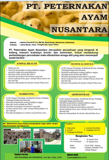 Kesempatan Kerja Pt Peternakan Ayam Nusantara Universitas