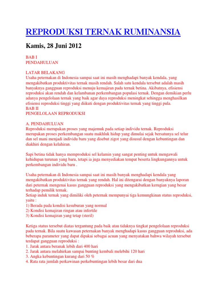 Reproduksi Ternak Ruminansia Kamis 28 Juni 2012