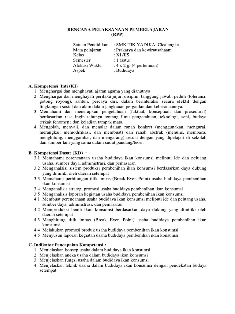 Rpp Budidaya Ikan Konsumsi Kelas Xi