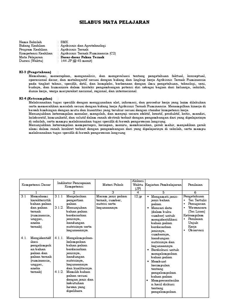 10a Contoh Silabus Dan Rpp K 13 Ternaknunggas
