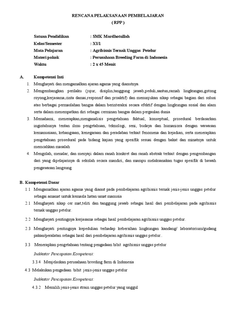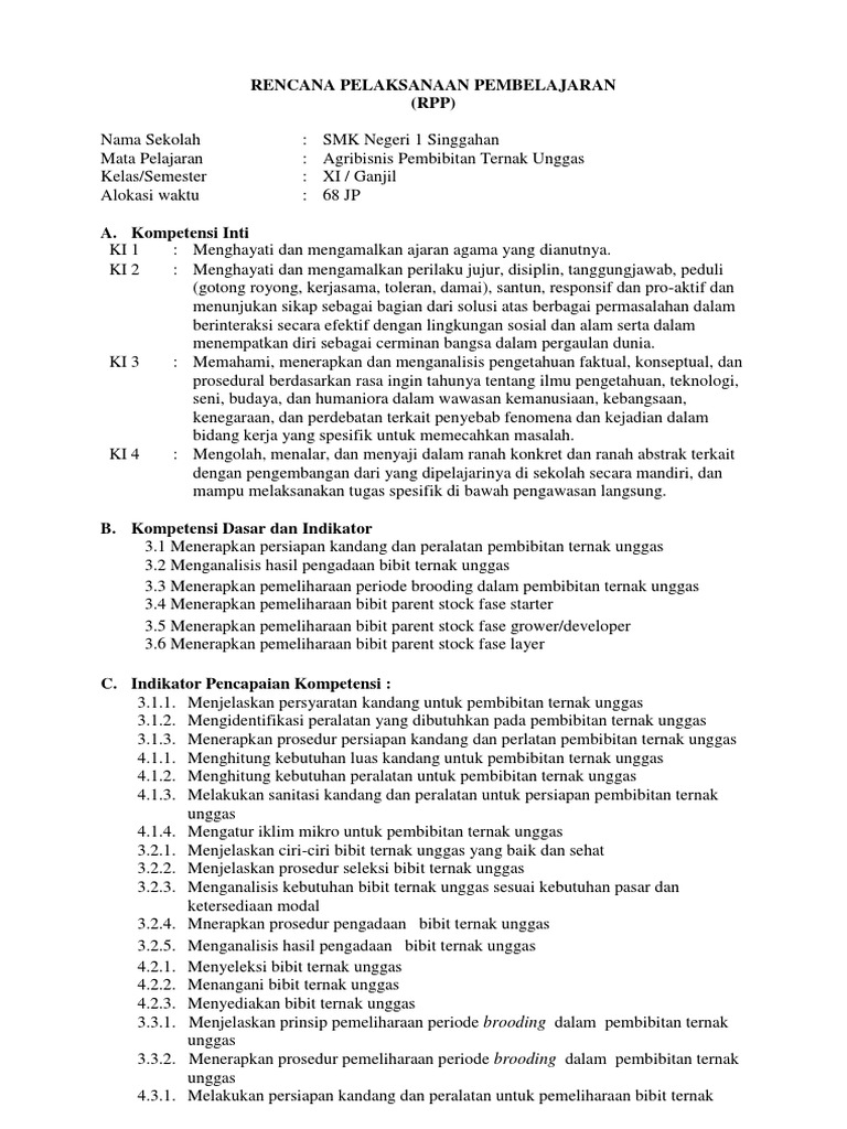 Rpp Agribisnis Pembibitan Ternak Unggas