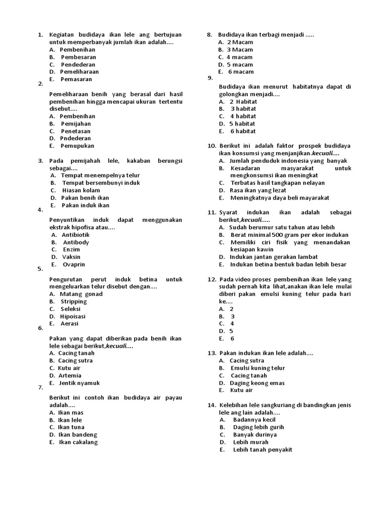 Soal Budidaya Ikan Konsumsi Kelas 11