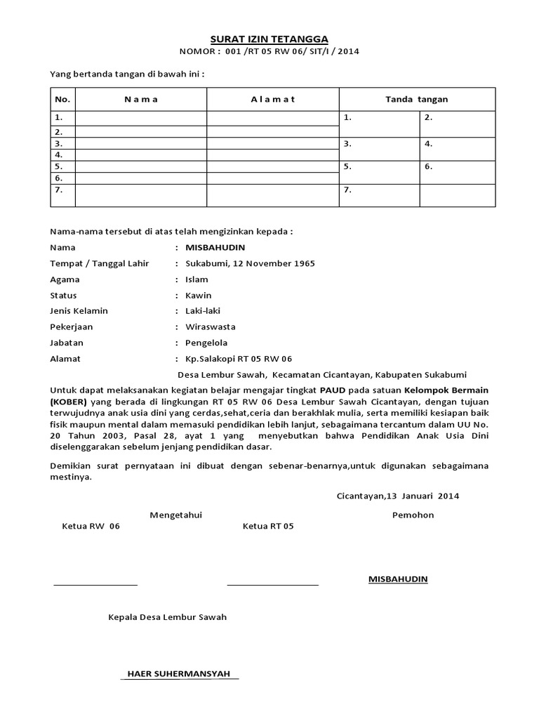 Surat Pernyataan Izin Lingkungan Izin Tetangga Bloggadogado
