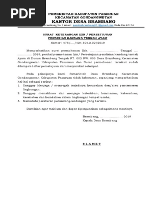 Gratis Contoh Surat Izin Pendirian Komunitas Peternak Ayam