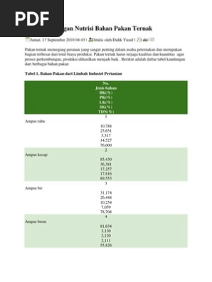 Tabel Kandungan Nutrisi Bahan Pakan Ternak Ruminansia Pdf