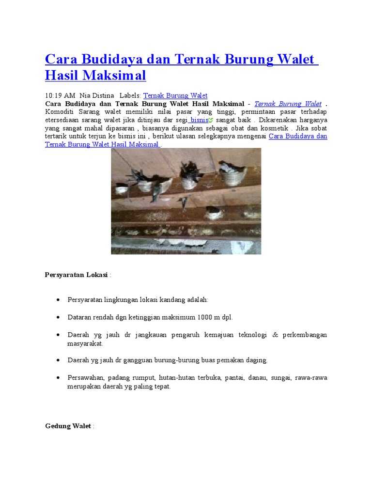 Teknik Budidaya Burung Walet Pdf