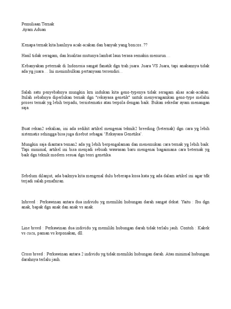 Metode Perkawinan Cross Breed In Breed Dan Line Breed King