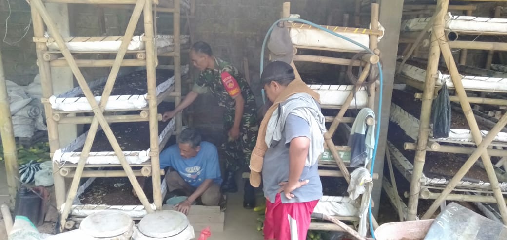 Babinsa Manisrenggo Bantu Agus Bersihkan Kandang Ternak Cacing