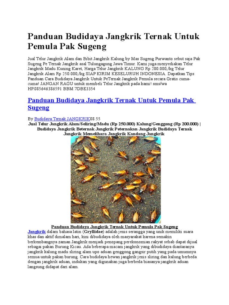 Panduan Budidaya Jangkrik Ternak Untuk Pemula Pak Sugeng