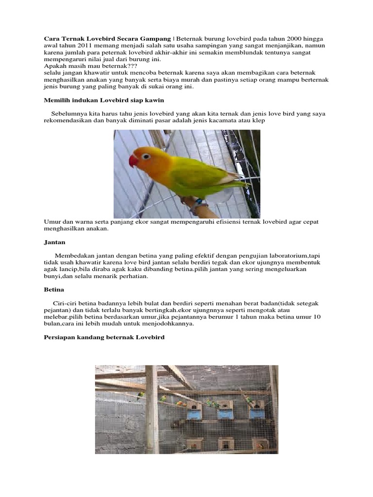 Cara Ternak Love Bird Pdf Document
