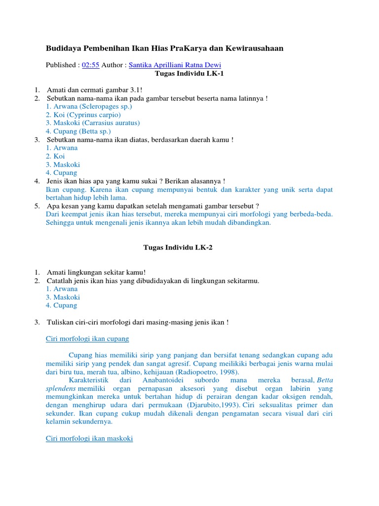 Budidaya Pembenihan Ikan Hias Prakarya Dan Kewirausahaan Docx