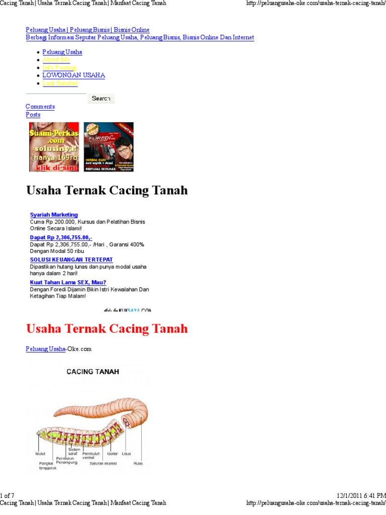 Peluang Usaha Budidaya Cacing Lumbricus Dan Analisa Usahanya