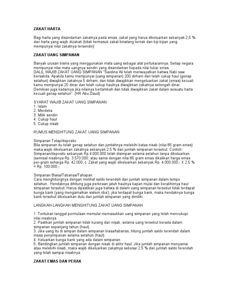 Cara Menghitung Besaran Zakat Harta Nisab Emas Nisab Harta