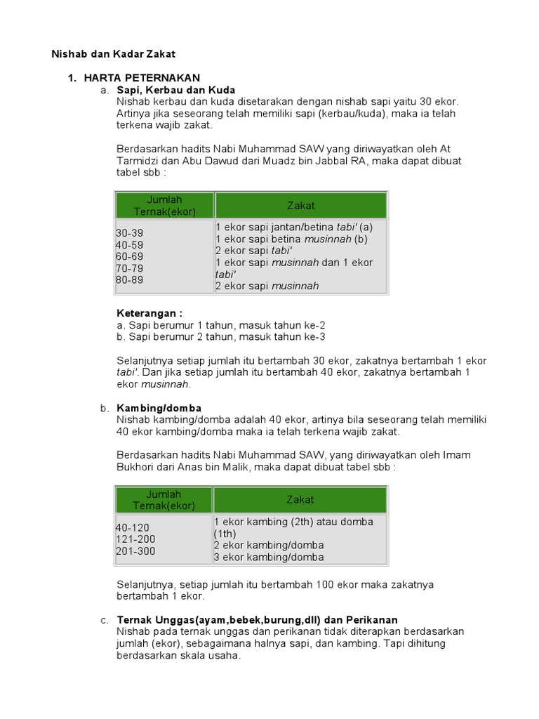 Nishab Dan Kadar Zakat Harta Berdasarkan Jenis Binatang Ternak